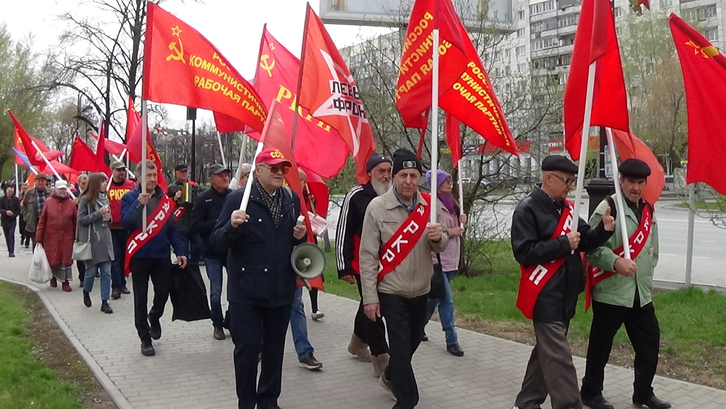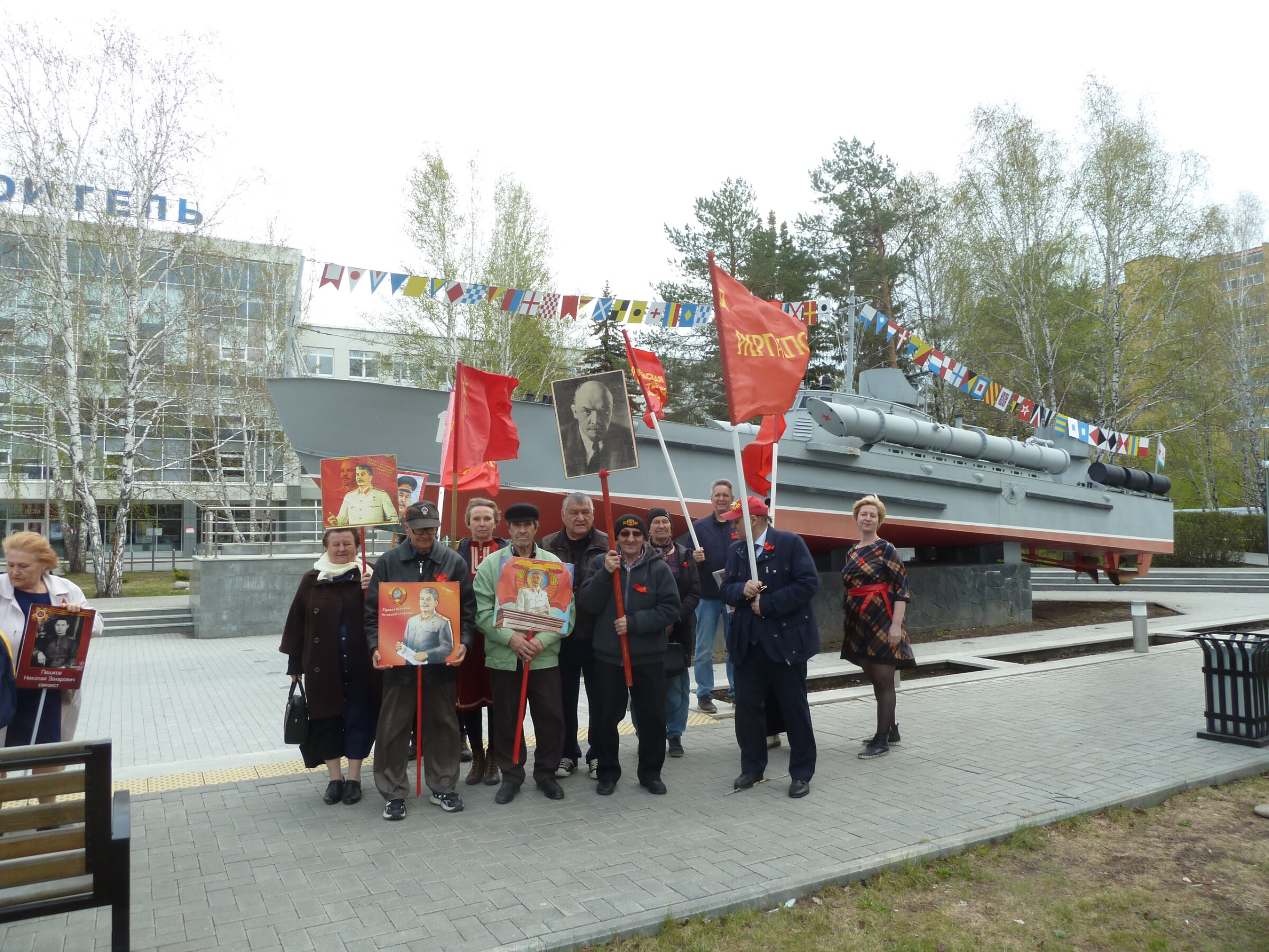 Но настоящие коммунисты не идут на сделки с властью. Поэтому 1 Мая сбор проходил на перекрестке ул. Республики и Мельникайте. Сотрудники полиции пытались заявить, что проведение шествия незаконно. На что им было сказано, что отказ со стороны администрации г. Тюмени был незаконным и что коммунисты РКРП отменили проведение демонстрации и митинга и будет проведено шествие по тротуару, по которому никому не запрещается идти, и собрание, на которое, согласно п. 1 ст. 7 ФЗ-54 «О собраниях, митингах, демонстрациях, шествиях и пикетированиях» уведомление органов власти не требуется. Начинают развеваться красные флаги, все приходящие на шествие полны решимости отметить 1 Мая как день борьбы за свои права.