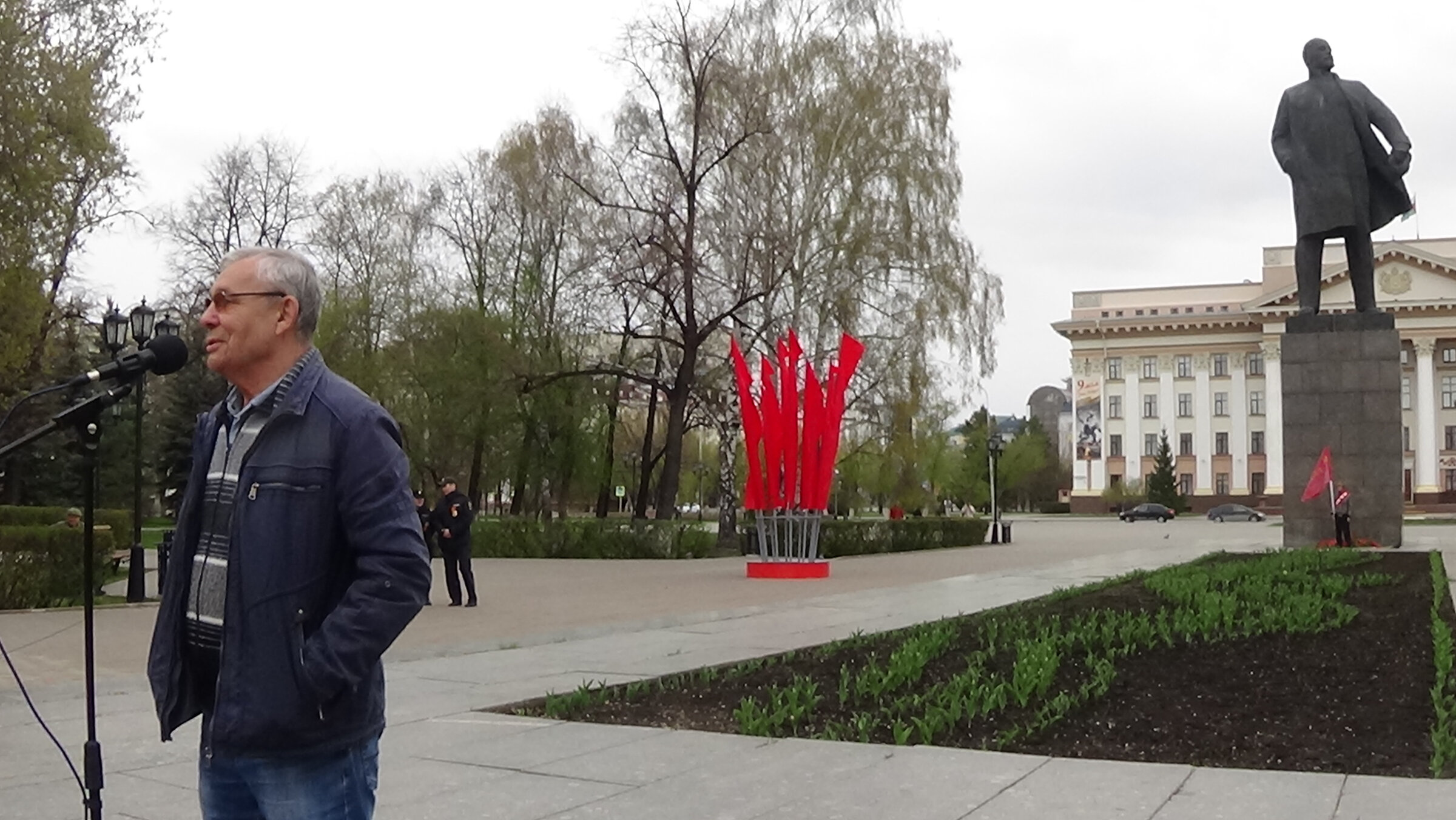 РКРП(б)-КПСС А.К. Черепанов. Он рассказал об истории появления 1 Мая, когда трудящиеся встали на борьбу за свои права. В Советском Союзе этот день был показателем готовности трудящихся оказывать свой интернациональный долг помощи всем трудящимся. Но предатели, и в первую очередь Горбачёв и Ельцин, извратили все идеалы советской власти и социализма. Под диктовку США он вёл СССР к уничтожению.